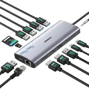 12-in-1 USB C Docking Station with Dual HDMI, 4K@60Hz, Gigabit Ethernet, 100W PD, USB 3.0/2.0, SD/TF Card Reader - for Laptops with Type C Port