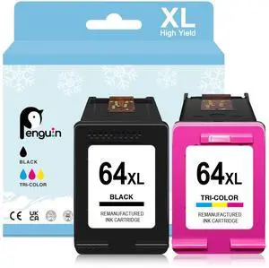 Penguin 64XL Ink Cartridges Replacement for HP Ink 64 HP64 XL HP64XL Black and Color for Envy Photo 7855 7858 7100 7120 6255 6258 6252 7864 Printers Combo Pack 64 XL Ink Black and Color