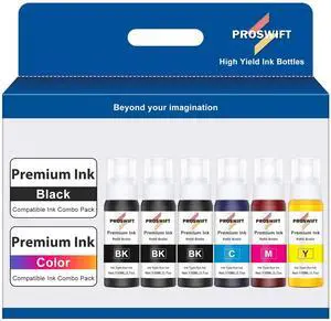 PROSWIFT 522 High Capacity (6 Bottles) Ink Refill Bottles Combo Pack Replacement for Epson Compatible 522 Ink Use for EcoTank ET-2800 ET-2803 ET-2400 ET-4800 ET-2720 ET-2840 ET-3850 ET-2850 Printer