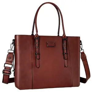 MOSISO PU Leather Laptop Tote Bag for Women (15-16 inch), Waterproof Large Capacity Business Work Briefcase Shoulder Laptop Bag, Brown