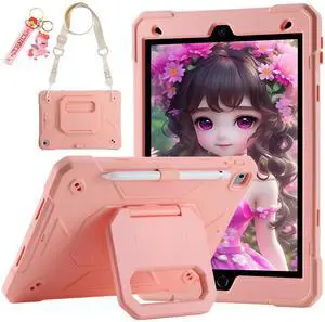 for iPad 9th/ 8th/ 7th Generation Case (iPad 10.2 inch Shockproof Case) with 360 Rotating Grip Magic Stand, Pencil Holder/Keychain/Carrying Shoulder Strap for iPad 10.2 inch