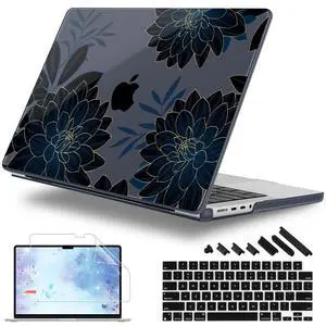 Lepeoac for MacBook Pro 16 inch Case 2021 2022 2023 2024 Release A3186 A3403 M4 A2991 M3 A2780 M2 A2485 M1 Pro/Max, Hard Shell Case with Screen Protector & Keyboard Cover, Flower Dahlia