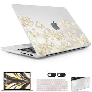 Lepeoac for MacBook Pro 16 inch Case 2021 2022 2023 2024 Release A3186 A3403 M4 A2991 M3 A2780 M2 A2485 M1 Pro/Max, Hard Shell Case with Screen Protector & Keyboard Cover, Lotus