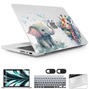 Lepeoac for MacBook Pro 16 inch Case 2021 2022 2023 2024 Release A3186 A3403 M4 A2991 M3 A2780 M2 A2485 M1 Pro/Max, Hard Shell Case with Screen Protector & Keyboard Cover, Elephant & Giraffe