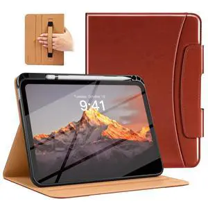 MoKo for iPad A16 Case 11-inch, iPad 11th/10th Generation Case (2025/2022) with Pencil Holder & Pocket, Premium Leather Folio Stand Cover, Multiple Viewing Angles, Reddish Brown
