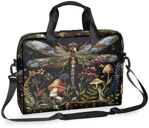 cfpolar Laptop Bag Dragonfly Flower Mushroom Laptop Satchel Briefcase Adjustable shoulder Carrying for 15 inch-16 inch Laptop