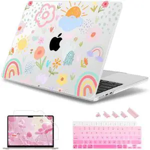 May Chen Case for MacBook Air 13/13.6-inch (M5/M4/M3/M2, 2022-2026 Models A3449 A3240 A3113 A2681), Lightweigth ^^ Closes Seamlessly ^^ Ideal for Work, Print Shell Case, Rainbows Flowers