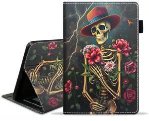 JDHJFBFJNP Case for Kindle Fire 7 Tablet (12th Generation, 2022 Release, 7" Display), PU Leather Stand Flip Cover with Card Slot & Pencil Holder, Skull Flower