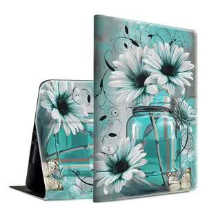 MEEgoodo Case for iPad 10.2 inch, Case for iPad 9th Generation 2021/ 8th Generation 2020/ 7th Gen 2019, Tablet Cover with Silk Texture & PC Back Cover, Ink Colorful Flowers