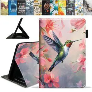 BWOOLL Case for All-New Kindle Fire 7 Tablet (7" Display, 12th Generation, 2022 Release), Slim Lightweight PU Leather Stand Cover with Auto Wake/Sleep, Hummingbird Flowers