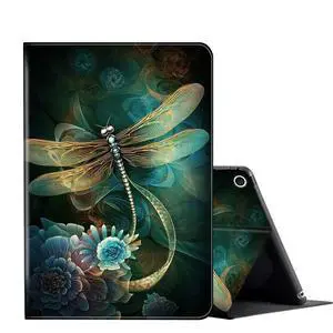 for Fire HD 8/ HD 8 Plus Tablet Case (12th/10th Generation, 2024/2022/2020),FUYOCWE Multi-Angle Slim Stand Flip Smart Cover for Kindle Fire HD 8 Inch 12th/10th Gen-Dragonfly Flowers