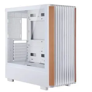 ATX Mid Tower Gaming PC Case - Tempered Side Glass Panel - Dual Chamber - Walnut Wood Front - Can Build in 12 ARGB PWM Fans High Airflow 360MM RAD Supports for ATX/mATX/Mini ITX Motherboards White