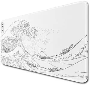 llsxi Large Gaming Mouse Pad with Stitched Edges,Non-Slip Base Desk Pad,White Wave of Japanese Kanagawa Mouse Pad,XXL 15.7x35.4 inch Extended Keyboard Pad Long Desk Pad for Office and Game