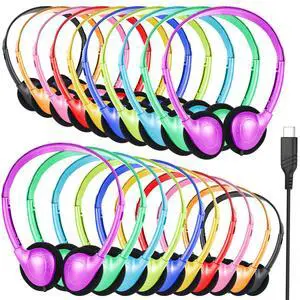 GDBOMA USB C Headphones Bulk 20 Pack for Classroom School Kids,USB Type C Headphones Class Set Compatible with Pad Smartphones Mixed Colors