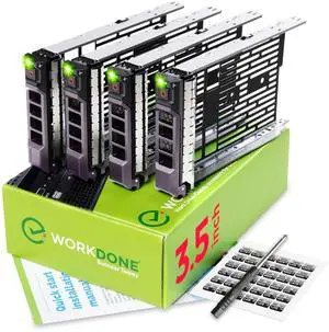 WORKDONE 4-Pack - 3.5 inch Hard Drive Caddy - Compatible for Dell PowerEdge Selected 11-13th Gen. Servers - with Detailed Installation Manual - Sled Front Sticker Labels - Screwdriver