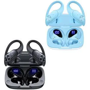 2 Sets Bluetooth Headphones Wireless Earbuds 80hrs Playtime Wireless Charging Case Sports Ear buds with Earhook Premium Deep Bass IPX7 Waterproof Over-Ear Earphones for TV Phone Laptop Black and Blue