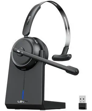 LEVN Wireless Headset, Wireless Headset with Mic for Work, AI Noise Cancelling, 65 Hrs Working Time, Bluetooth Headphones with Microphone from Computer/Call Center/Teams