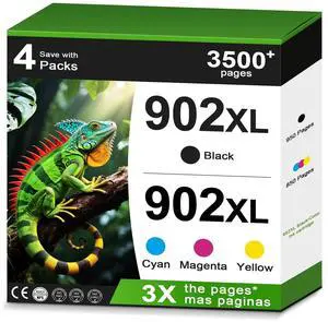 902XL Ink Cartridges Combo Pack Compatible Replacement for HP 902 XL HP902 HP902XL Black Color for HP902 OfficeJet 6978 6970 6958 6960 6966 6956 6950 6974 6963 Printer Cyan Magenta Yellow 4-Pack