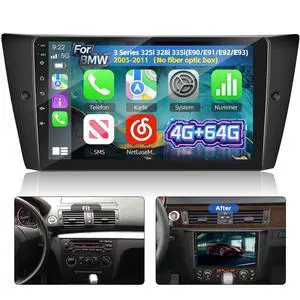 [4G+64G] Volxcereo Car Radio for BMW 3 Series 328i 335i 325i E90 E91 E92 E93 2005-2011, 9 inch Android Touchscreen Stereo with Carplay/Android Auto, GPS, WiFi, Bluetooth, SWC, FM/RDS