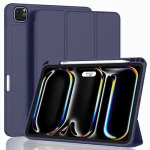 ZryXal iPad Pro 11 Inch Case (M5) 2025/ (M4) 2024 (Model: A2836/A2837/A3006), Trifold Stand Smart Cover with Pencil Holder and Soft TPU Back, Auto Wake/Sleep (Dark Blue)