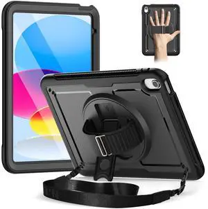 Timecity Case for iPad (A16) 11th Generation 11 inch 2025/ iPad 10th Generation 10.9 inch 2022: Full-Body Protective Case with Screen Protector, 360 Rotating Stand, Hand/Shoulder Strap -Black
