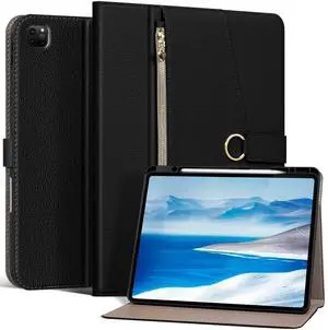 XFYKJIN Premium Microfiber Leather Case for iPad Pro 12.9" (2018-2022 6th/5th/4th/3rd Gen) ^^ Black with Zippered Pocket, Buckle, Pencil Holder, Auto Wake/Sleep, Multi Stand,Balck