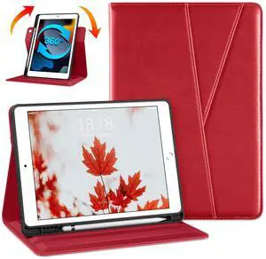 DTTO for iPad 9th / 8th / 7th Generation Case 10.2 Inch (2021/2020/2019), 360 Degree Rotating Premium Leather Folio Stand Cover with Pencil Holder, Coral Red