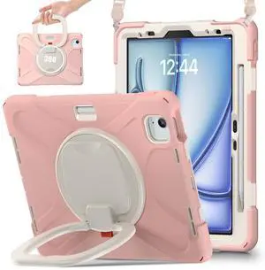 SCSVPN for iPad Air 11 Inch Case M3/M2 (7th/6th Generation, 2025/2024), iPad Air 5th/4th Gen 10.9''(2022/2020), iPad Pro 11''(2020-2018) Protection Cover with Pen Holder+Stand+Shoulder Strap, Pink