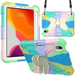 YQG Compatible with iPad Mini 6 Case 8.3 inch 2021,iPad 6th Generation for Kids Boy Girl Gift, Cute Butterfly Wings Kickstand Shockproof Silicone Cover 8.3 inch-Colourful Green