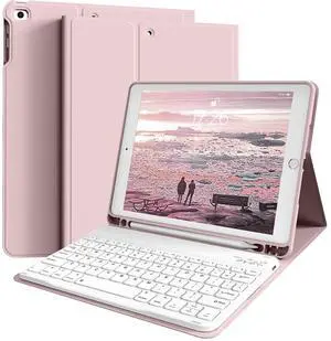 kenke for iPad 6/5th Generation Case with Keyboard 9.7 Inch 2018/2017 iPad Air 2/1, Detachable Wireless Bluetooth iPad Keyboard Case with Built-in Left Side Pencil Holder Auto Wake/Sleep (Pink)
