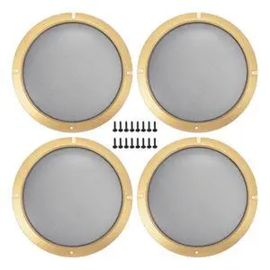 ACROPIX Universal 8" Car Speaker Grills Cover Mesh Round 8 Inch Audio Speaker Subwoofer Guard Protector Case with Screws Iron Gold Tone Black - Pack of 4