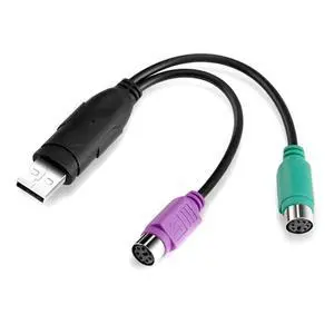USB to PS2 adapter cable, USB to keyboard and mouse adapter cable, USB to 2-outlet splitter with chip black