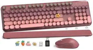 Fogruaden Quiet Wireless Keyboard and Mouse Combo, 2.4GHz Retro Cute Typewriter Full-Size Colorful Pink Keyboard, Slim Design, Low-Noise Typing for Home, Office, Windows PC, Laptop