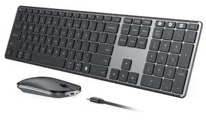 seenda Wireless Bluetooth Keyboard and Mouse Combo, SKM64-3 Rechargeable Slim Quiet Keyboard Mouse, 3 Multi-Device Connection, Compatible for Windows, Mac, MacBook, iPad, Tablet, Black Gray