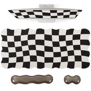 L-SPOUTTO Black Checkered Mouse Pad Set,Scalloped XXL Desk Mat + Ergonomic Mouse Wrist Rest + Gel Keyboard Wrist Rest for Keyboard 65%/75%,3in1 Large Desk Pad for Desktop Home Office Computer Game