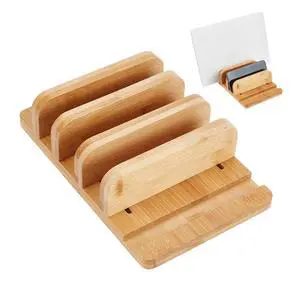 BENECREAT 9.8x6.3x2.5 Inch Vertical Laptop Stand, Wooden Desk Stand with Wide Compatibility & DIY Assembly Kit, Adjustable Dock Laptop Holder for Pad, Phone, Tablet