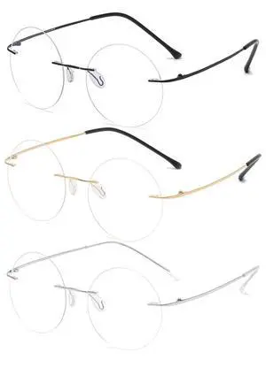 KOOSUFA Titanium Rimless Round Glasses Blue Light Blocking Eyeglasses Frameless Lightweight Eyewear Men Women for Computer Working Reading Gaming, Black+golden+silver