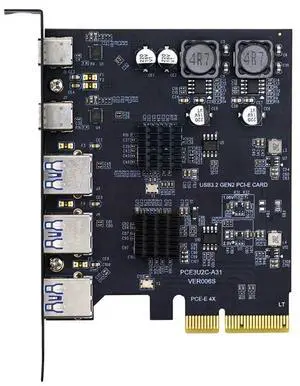 xiwai Superspeed 10Gbps PCIE USB Card PCI-E Express to Three Ports Type-A USB3.0 Back Panel Socket & Dual USB3.1 USB-C Type-C Expansion Adapter ASM3142 VL822