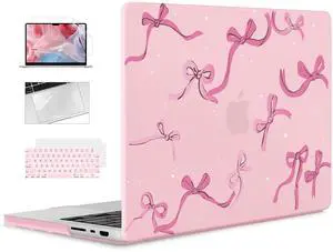 ICEKEE for MacBook Pro 14 inch M5 2026 2025-2021 Release M5 M4 M3 M2 M1, A3427 A3426 A3434 A3112 A3401, Plastic Hard Shell Case & Keyboard Cover & Screen Protector, Chalk Pink Bow