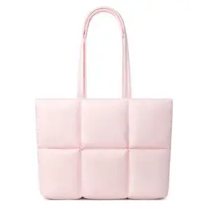 Comfyable Puffy Laptop Bag Compatible for 13 Inch 14 Inch MacBook Pro/Air, Lightweight Puffer Handbag for Women with Laptop Compartment, Quilted Anti-Slip Shoulder Bag for Work, Travel, College, Pink