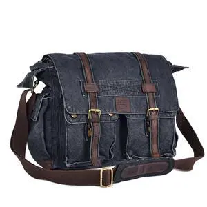 [Upgraded] Vintage Canvas Messenger Bag 13 15.6 17 inches Large Book Laptop Shoulder Bag Women Men New (Black, Large)