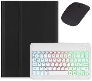 Backlit Keyboard for Galaxy Tab S9 FE+ 12.4/ Tab S10+ / Tab S9+ /S8+/S7+/S7 FE 12.4 inch Case with Mouse and Magnetic Detachable Backlight Color Keyboard,Black+White