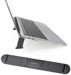 Portable Travel Laptop Stand Black for 12-17 Laptop/Tablet - Adjustable, Ventilated, Lightweight, and Ergonomic, Adhesive Invisible Keyboard Lift, Small Laptop Cooling Stand to Keep Cooler