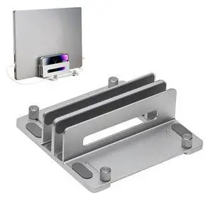 HomeBeyond Aluminum Vertical Laptop Stand for Desk, Adjustable Dual Slot Holder(up to 1.73 inches), Compatible with MacBook Pro, MacBook Air and Other Laptop - Save Space & Improve Airflow, Silver