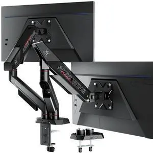 ARES WING Heavy Duty Single Monitor Arm, Fully Adjustable Single Monitor Mount for 17-40 Inch Flat Curved Ultrawide Screens Up to 26.5lbs with USB A/C, C-Clamp & Grommet Base, 75/100 Vesa Mount, Black