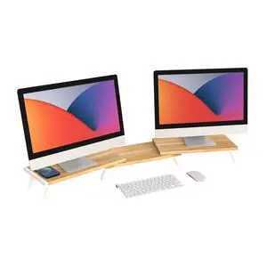 Navaris Dual Monitor Stand Riser - Real Wood Double Width Desk Shelf for Holding 2 Computer Screens - 42.9" x 9.1" x 4.7" (109cm x 23cm x 12cm) - Bamboo