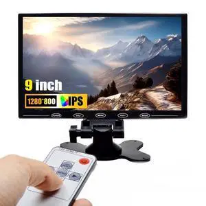 CAMECHO 9 Inch LCD Monitor HD Color Screen, 2 Video Input/HDMI/VGA, Support Car Backup, Mini PC Display, CCTV, Home Security, with Remote Control