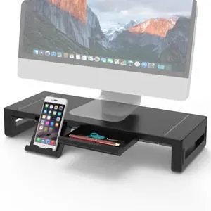 Epesoware Dual Monitor Riser with Two Drawers for Desk, Bamboo Monitor Stand Riser with Storage, Desk Shelf for Computer, IMac & Laptop, No Assembly Required, Black