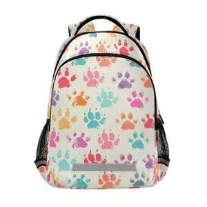 ALAZA Colorful Dog Paw Print Vinatge Backpacks Travel Laptop Daypack School Book Bag for Men Women Teens Kids