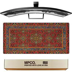 MPCO. Original Large Gaming Desk Mat 36" x 17" Duraglyde Arabic Textiles Royal-Medallions Full Desk Mouse Pad for Smooth Precision Non-Slip, Washable Extra-Large PC Mouse Pad for Gaming Sessions